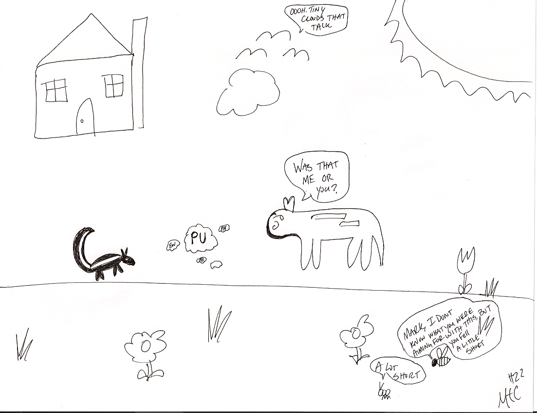Something Stank (Cowvin #22) Posted byMark T. CollinsSeptember 27, 2008February 9, 2016Posted inAnts, Bees, Cow, Cowvin, Cowvin Original, Floating House, Skunk, Sun Share: Click to share on X (Opens in new window) X Click to share on Facebook (Opens in new window) Facebook Click to share on Pinterest (Opens in new window) Pinterest Like Loading... Related